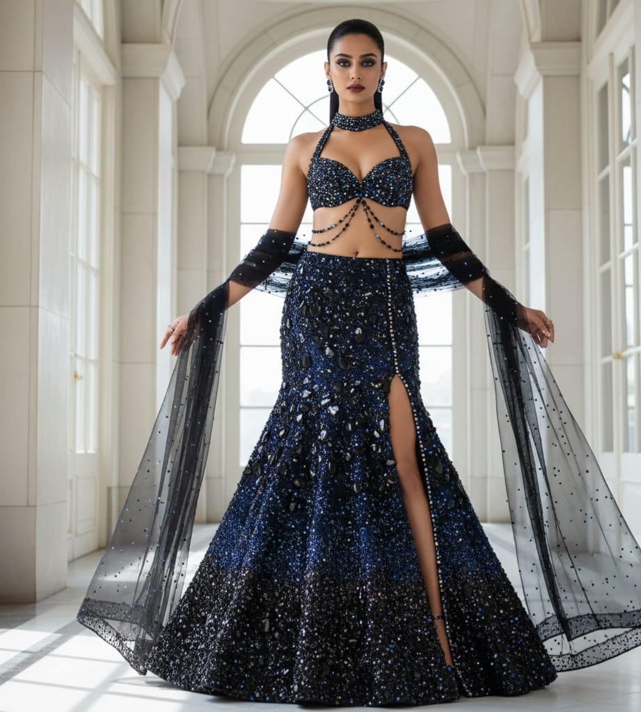 Be the first to review “Aqua Bloom 3D Floral Lehenga”