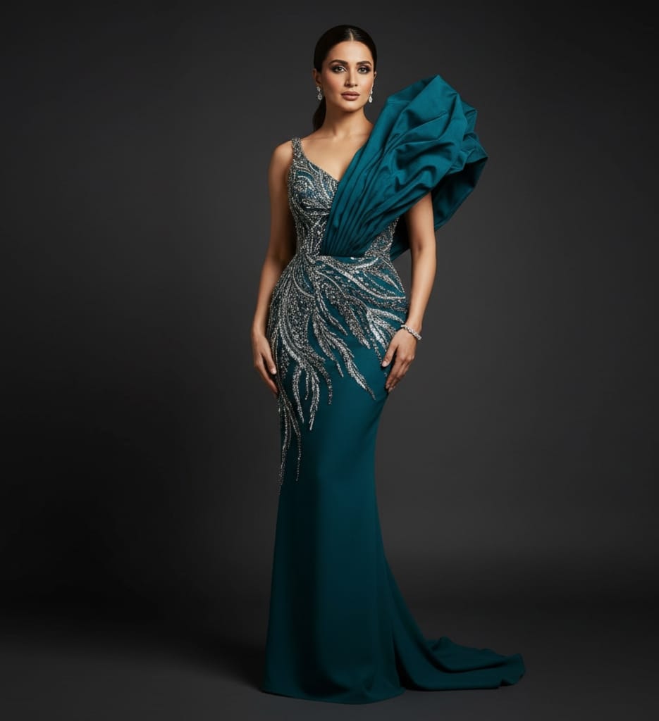 Celeste Teal Sculpted Gown