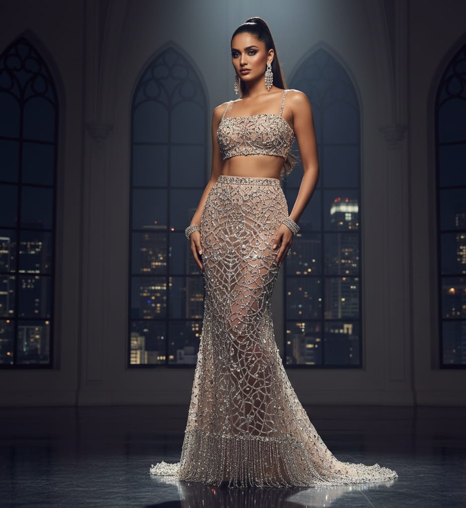 Champagne Lattice Crystal Gown