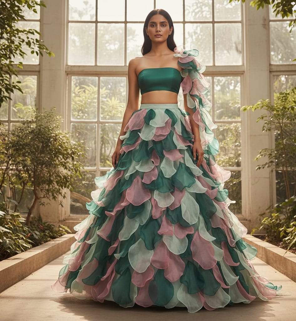 Emerald Whisper Ruffle Couture Gown